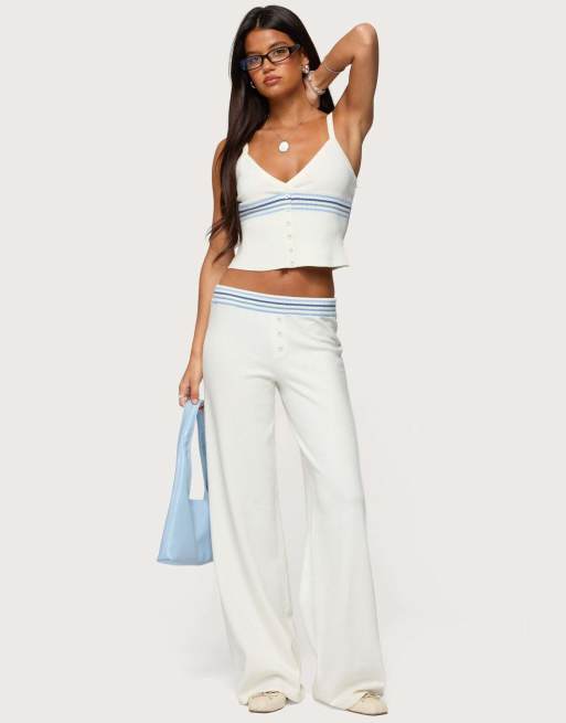 Edikted Miya stripey knit pants in white