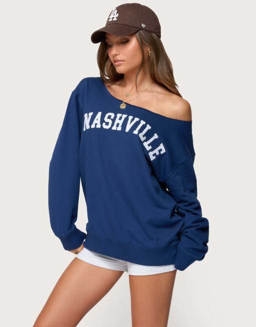Edikted Nashville oversized wide neck sweatshirt in navy