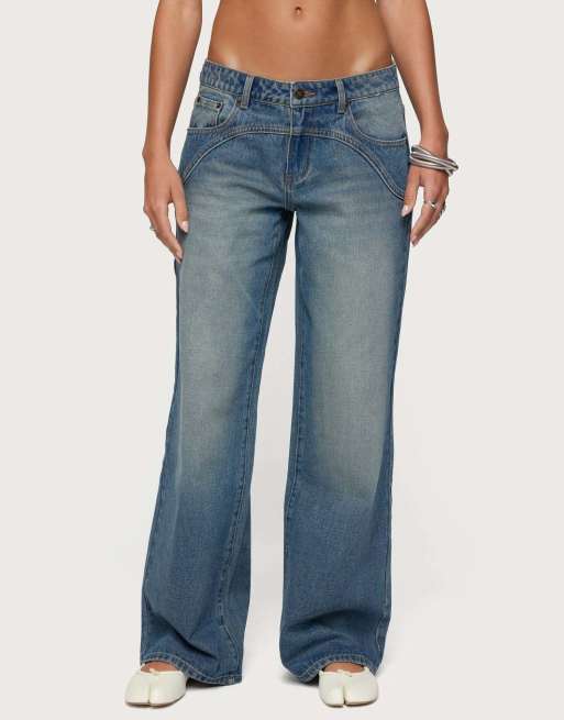 Edikted Ronny curved stitch low rise jeans in blue washed