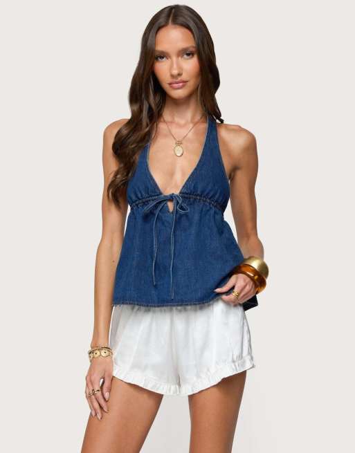Edikted Safia denim halter top in blue