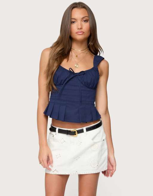 Edikted Tammie pleated poplin top in navy