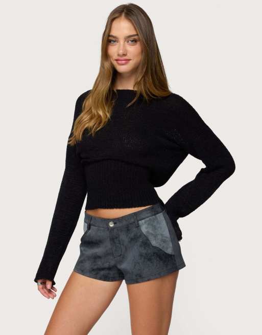 Edikted Tezi boat neck light knit top in black