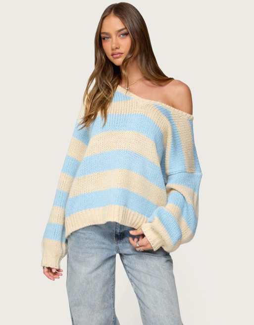 Edikted Tracie striped oversized sweater in light blue