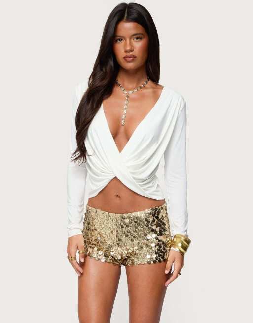 Edikted Twisted v neck long sleeve top in cream