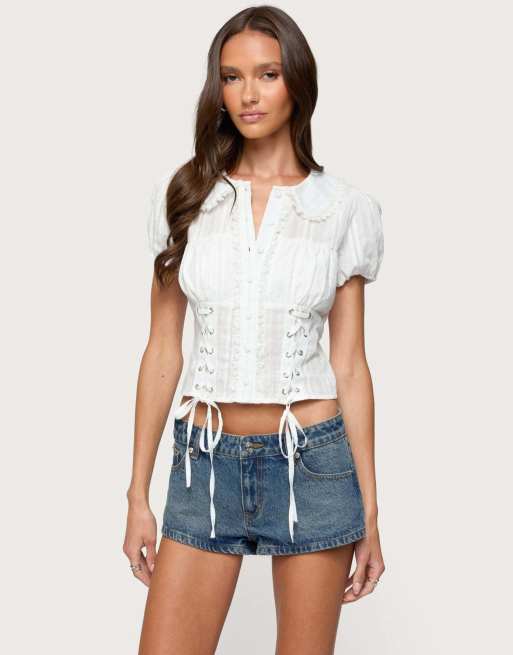 Edikted Valera cotton tailored button up shirt in white