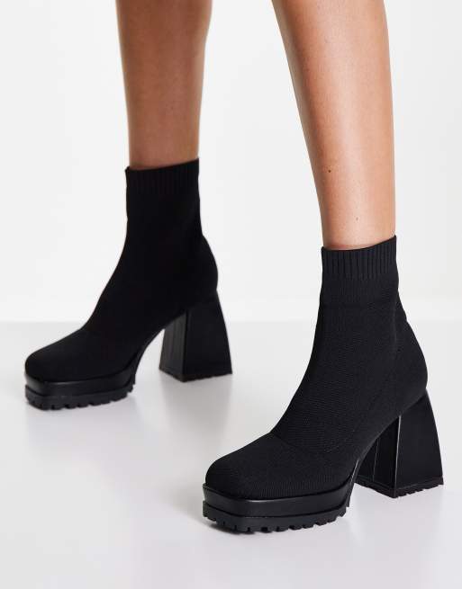 Ego Malayah chunky heeled boots in black knit