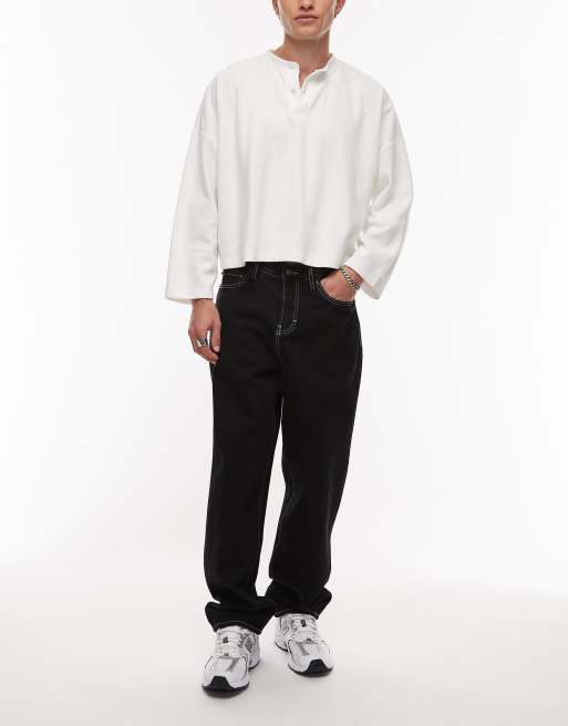 - Non-stretch denim: black wash