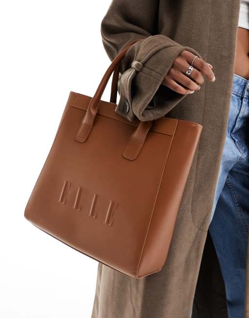 ELLE embossed tote bag in tan