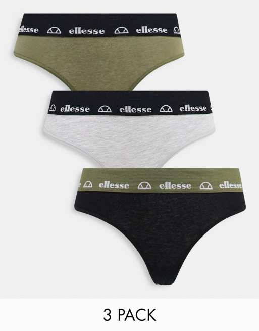Ellesse 3 pack thongs in black khaki grey