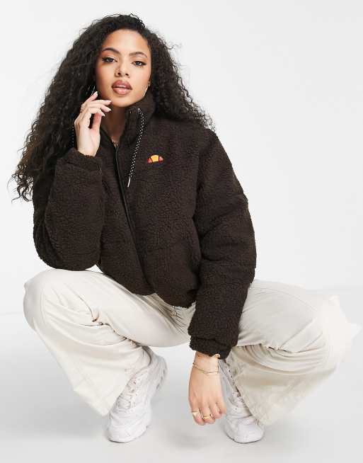 ellesse coffee pack borg jacket with logo in brown