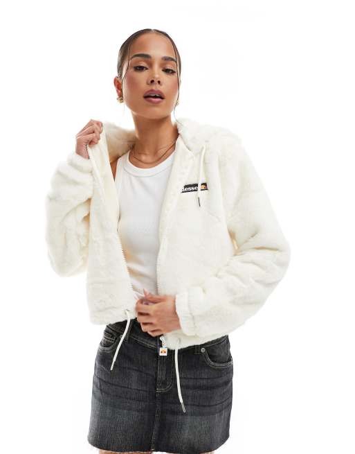 ellesse coffee pack faux fur hoodie in cream