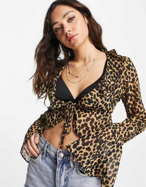 Emory Park long sleeve top with tie waist in leopard