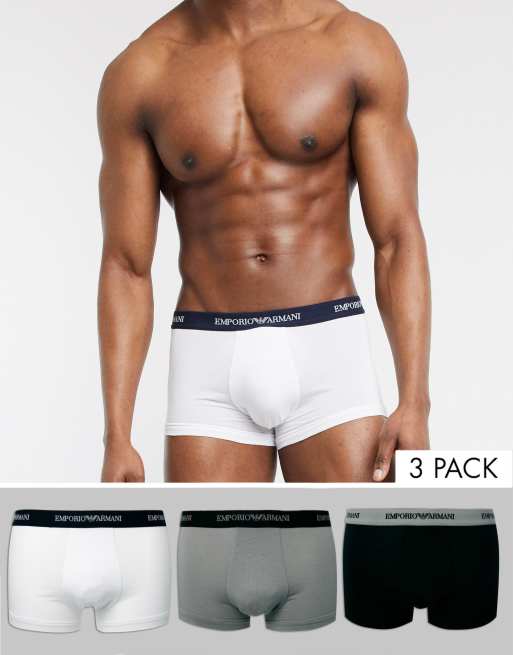 Emporio Armani 3 pack logo trunks in white/black/grey