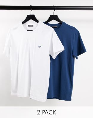 Emporio Armani Bodywear 2 pack core logo t-shirts in white and navy