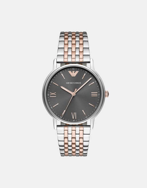 Emporio Armani Men's three-hand two-tone steel watch in 2-tone, rose gold, silver