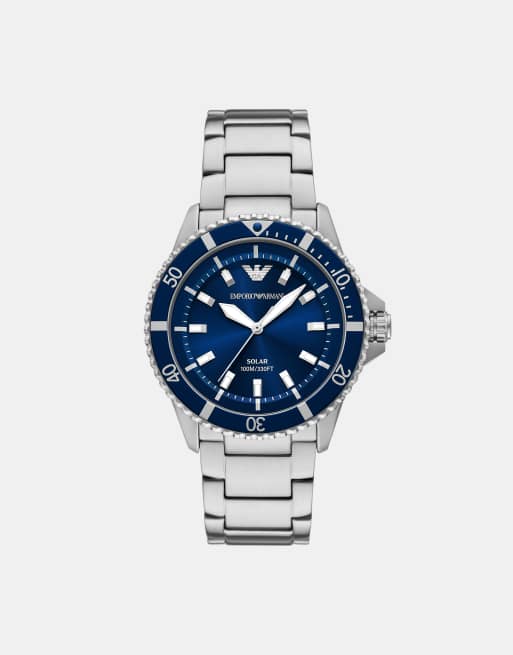 Emporio Armani Men's world explorer solar-powered three-hand stainless steel watch in silver