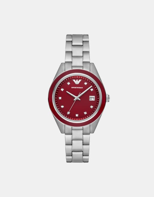 Emporio Armani 's women's three-hand date, stainless steel watch in silver