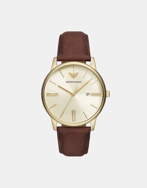 Emporio Armani Three-hand date brown leather watch in brown