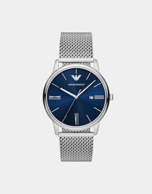 Emporio Armani Three-hand date stainless steel mesh watch in silver