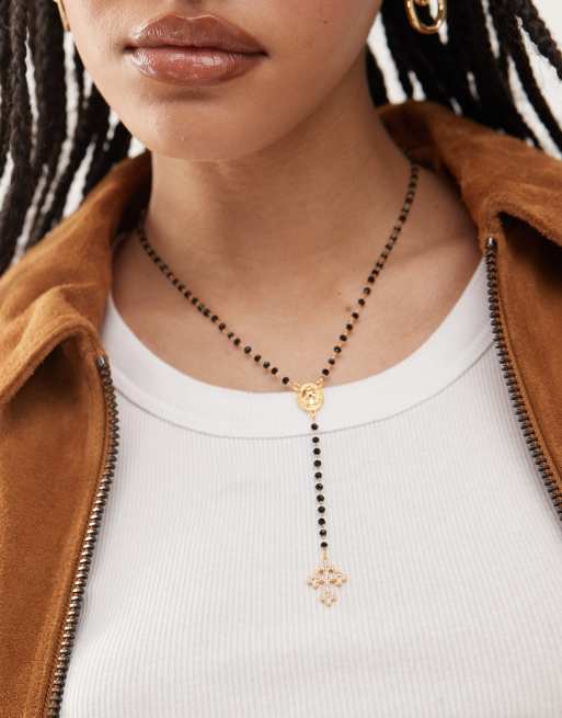 En Route 18k gold plated beaded lariat necklace with cross pendant