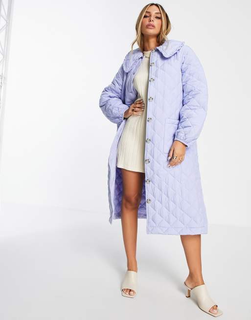 Envii quilted maxi coat with bib collar in pale blue