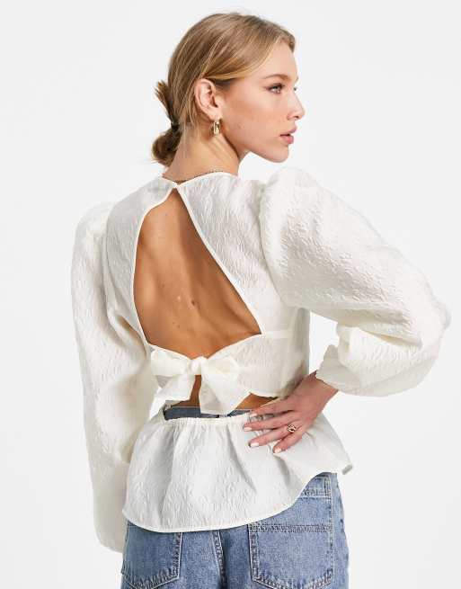 Envii tie back blouse in structured jaquard in white