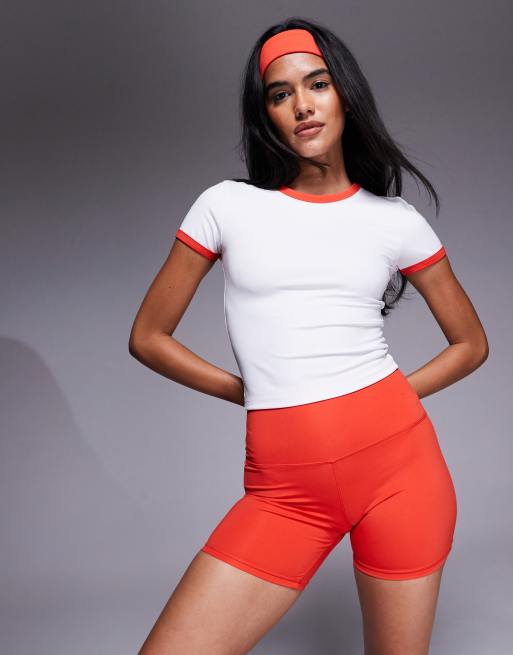 Camiseta blanca deportiva con diseño encogido y ribetes de 4505