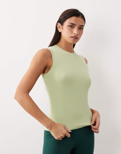 Camiseta color lima pastel ajustada sin mangas con acabado de secado rápido de algodón Everyday 4505