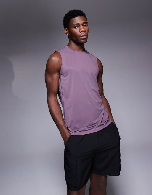 Camiseta deportiva verde mora sin mangas de malla con acabado de secado rápido Icon de 4505