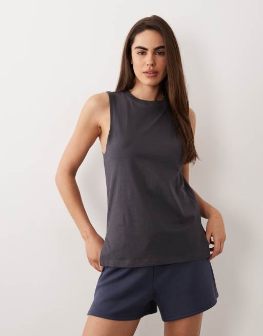 Camiseta gris oscuro sin mangas con sisas caídas de tejido de secado rápido de algodón Icon de 4505