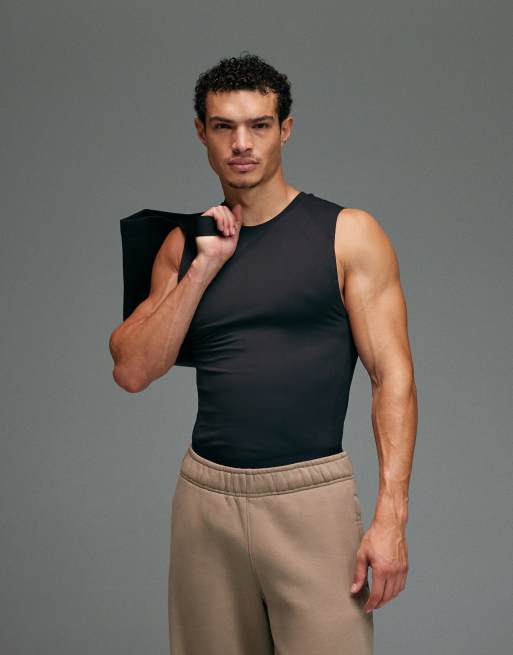 Camiseta interior negra ajustada de compresión sin mangas ni costuras de 4505