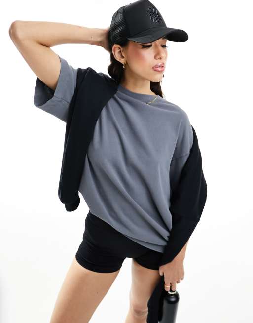 Camiseta negro lavado de corte cuadrado extragrande de tejido grueso de secado rápido de ASOS 4505