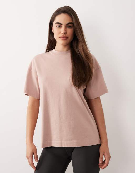 Camiseta rosa lavado extragrande de tejido grueso de algodón con acabado de secado rápido Icon de 4505