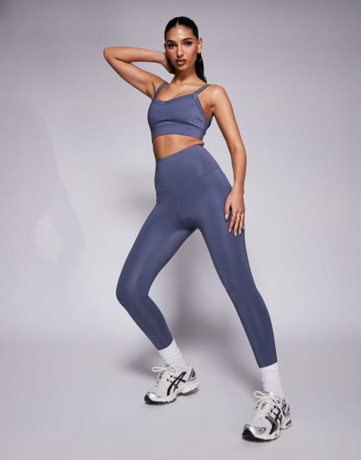 Leggings azul aciano para correr de talle alto con bolsillo para teléfono con cremallera de 4505