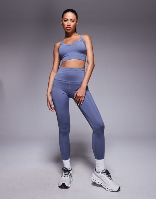 Leggings azul aciano para correr de talle alto con bolsillo para teléfono con cremallera de 4505