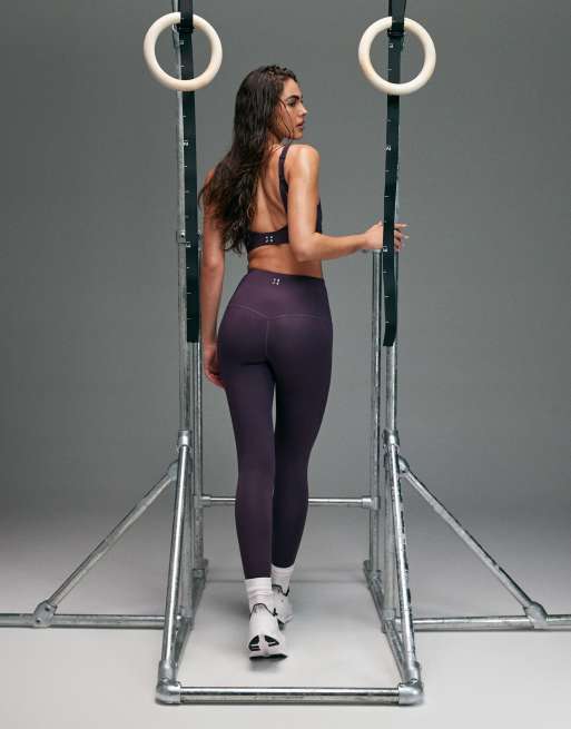 Leggings deportivos morados de talle alto con bolsillo interior y diseño moldeador en la parte trasera Icon de 4505
