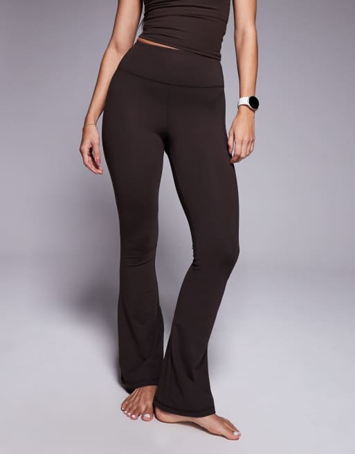 Leggings marrón chocolate para yoga de corte slim acampanado y talle alto de tejido suave Icon de 4505