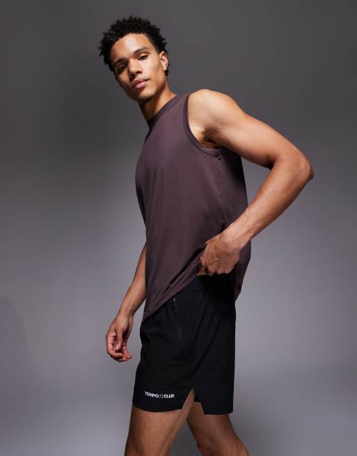 Pantalones cortos de 8 cm negros para correr con abertura, bolsillos con cremallera y gráfico reflectante de tejido de secado rápido de 4505