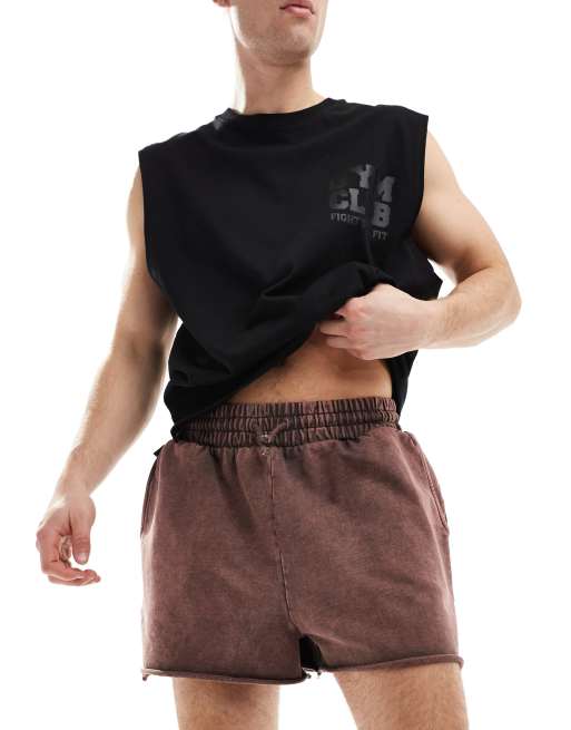 Pantalones cortos de chándal marrón lavado de tejido de secado rápido de ASOS 4505