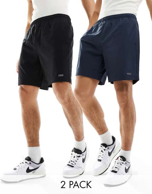 Pantalones cortos deportivos de 8 cm negros y azul marino con logo de tejido de secado rápido de ASOS 4505
