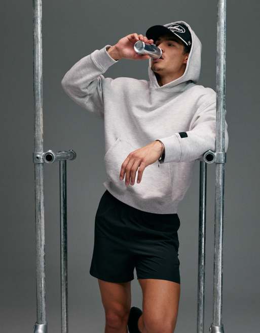 Sudadera gris claro jaspeado de corte cuadrado extragrande con capucha de tejido grueso de algodón de 440 g/m² Icon Rest Day de 4505