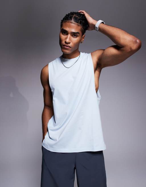 Top deportivo azul pálido sin mangas de algodón con sisas caídas y acabado de secado rápido Icon de 4505