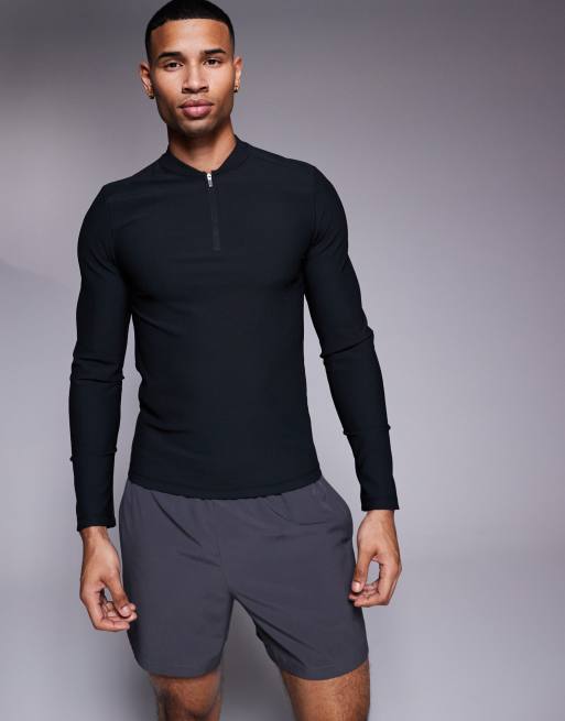 Top deportivo negro de corte slim y manga larga con cremallera de canalé de 4505