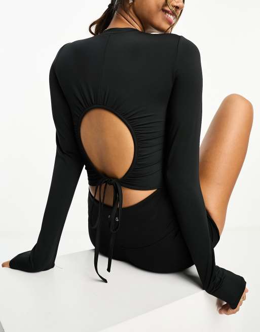 Top negro de yoga de manga larga con espalda abierta y detalle de lazada de ASOS 4505