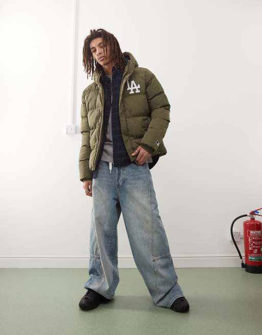 Abrigo caqui acolchado con diseño de los LA Dodgers y capucha de 47 Brand