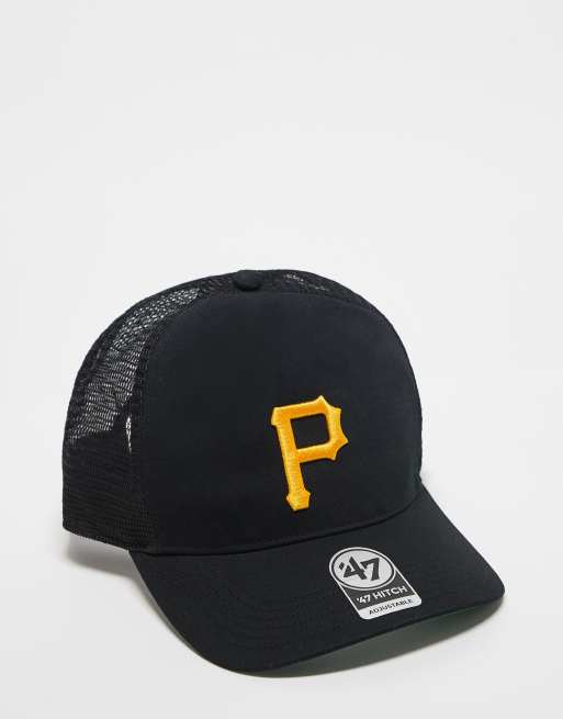 Gorra negra con visera plana en contraste y detalle de los Pittsburgh Pirates de la MLB de 47 Brand