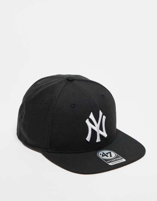 Gorra negra con visera plana y detalle de los NY Yankees de 47 Brand