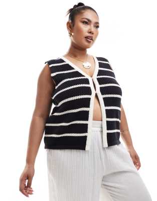 Chaleco de traje negro a rayas con ribetes en contraste y detalle de botones de punto exclusivo de 4th & Reckless Plus