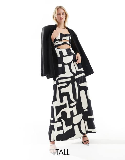Vestido largo monocromático estampado de tirantes con detalle de abertura de satén exclusivo de 4th & Reckless Tall