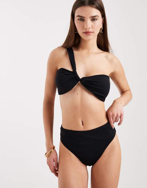Bikini negro asimétrico con detalle retorcido de tejido efecto rugoso de 4th & Reckless